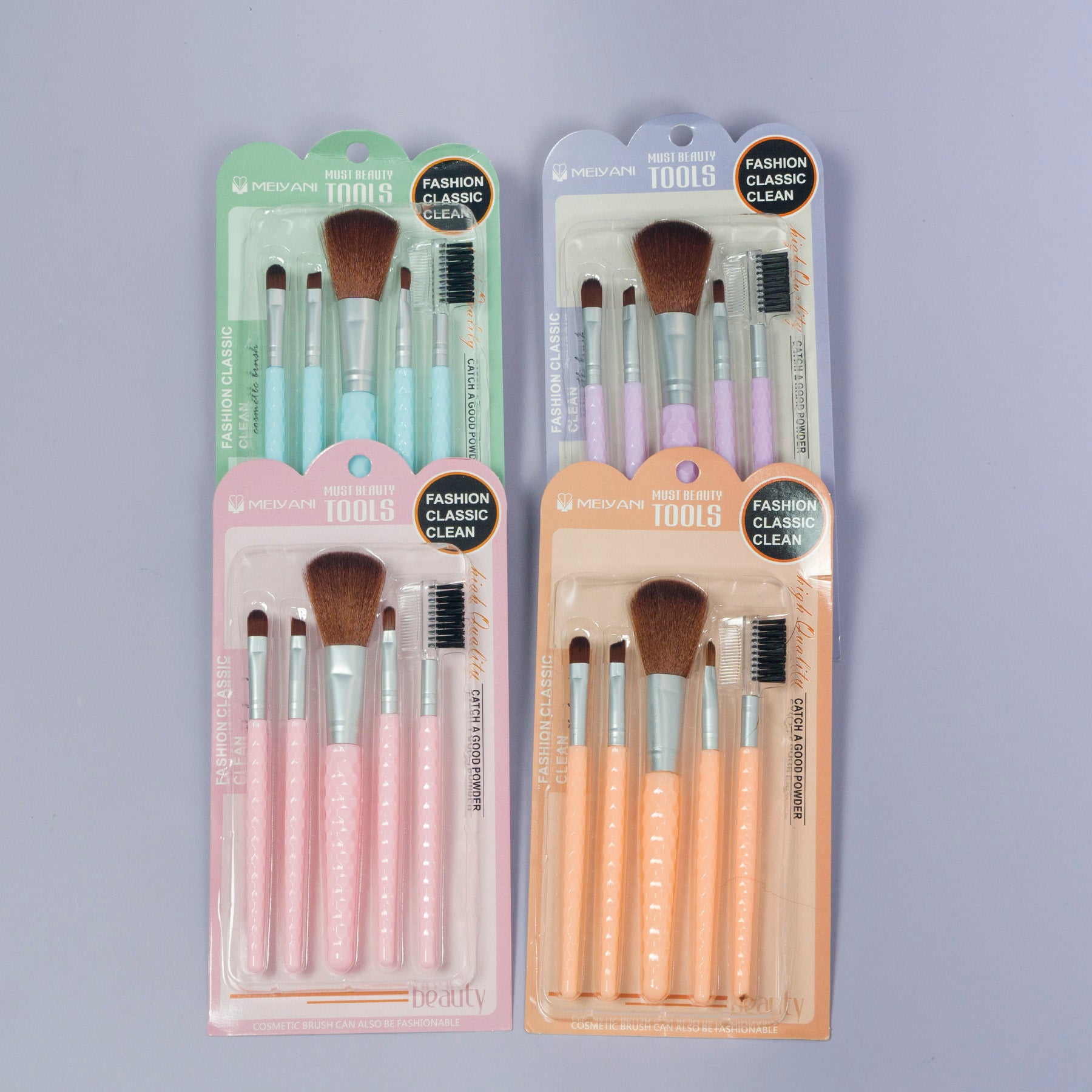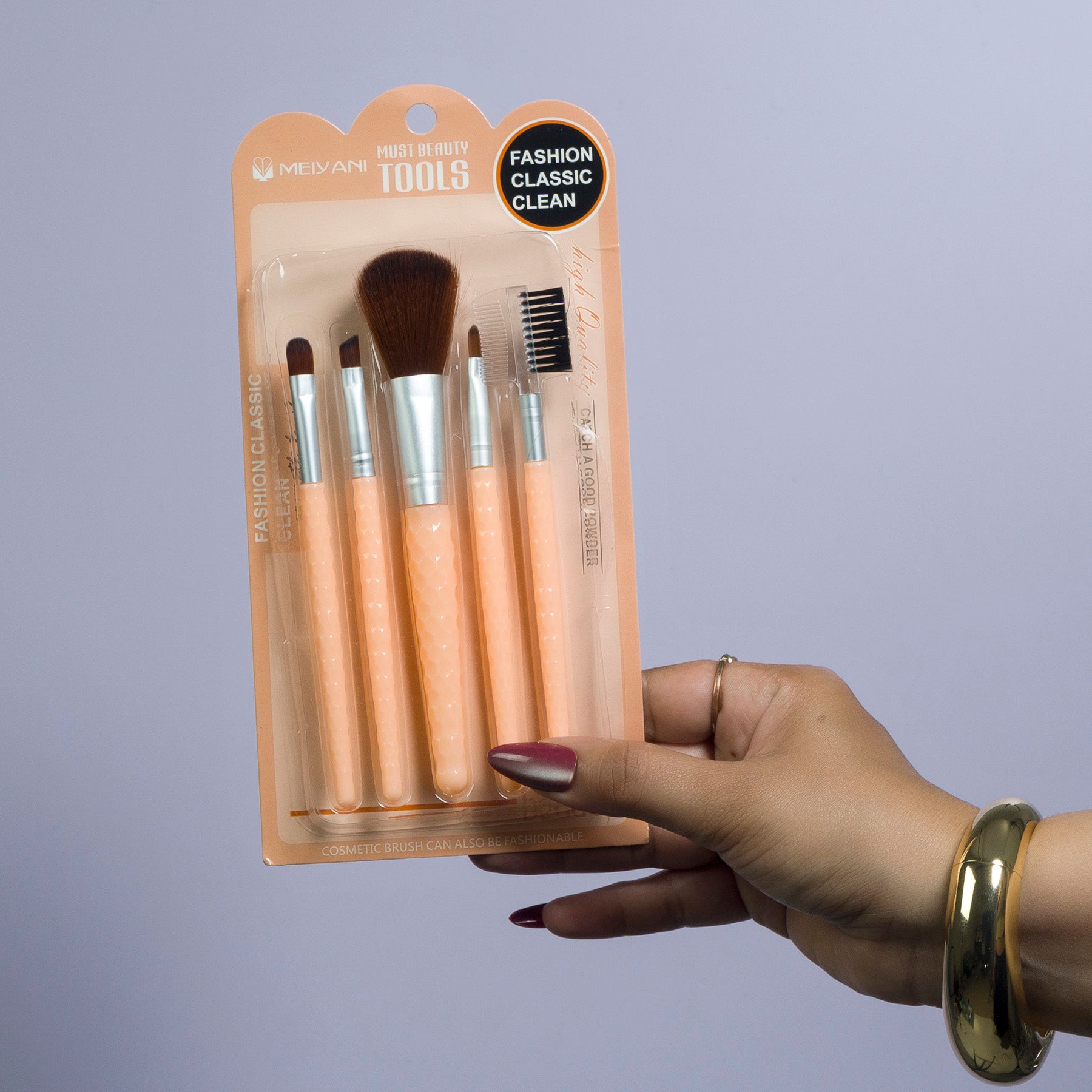 Get everyday glam with our 5-in-1 Makeup Brush Set. Soft, skin-friendly bristles and comfy textured handles make blending, shading, and grooming easy at home or on the go.