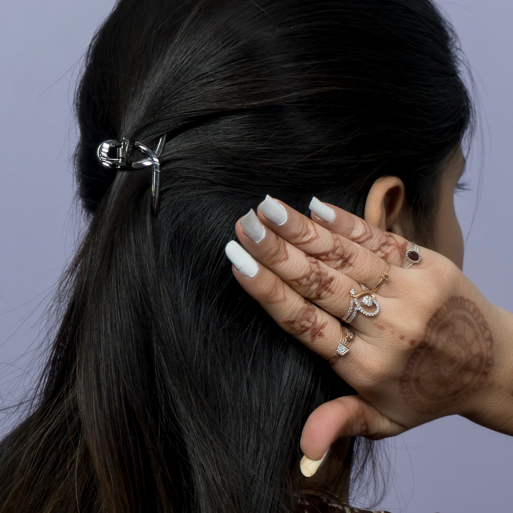 A sleek metal twist-design clip crafted for a secure and elegant half-hair hold.