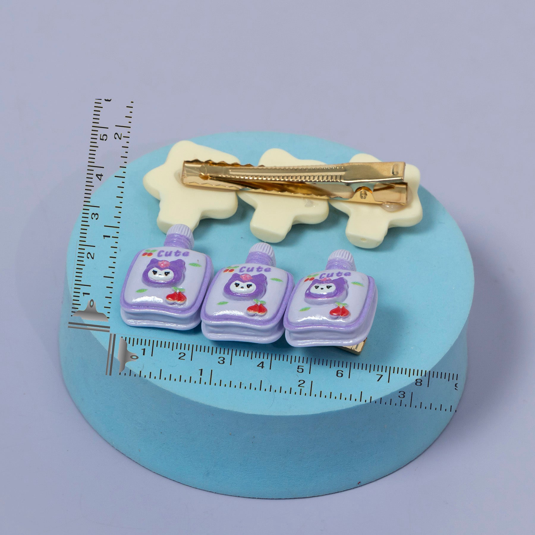Adorable bottle-shaped hair pins designed for kids and teens. Lightweight, colourful and perfect for daily styling with a fun, playful look.