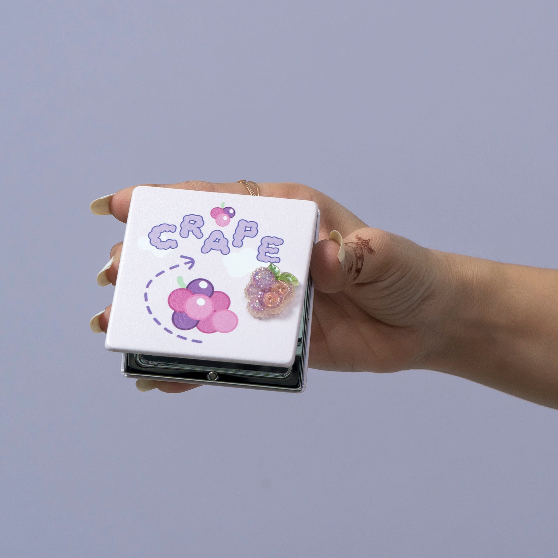 Adorable fruit-design pocket mirrors featuring mini 3D fruit embellishments. Compact, stylish, and perfect for daily touch-ups, school bags, gifting, and travel use.