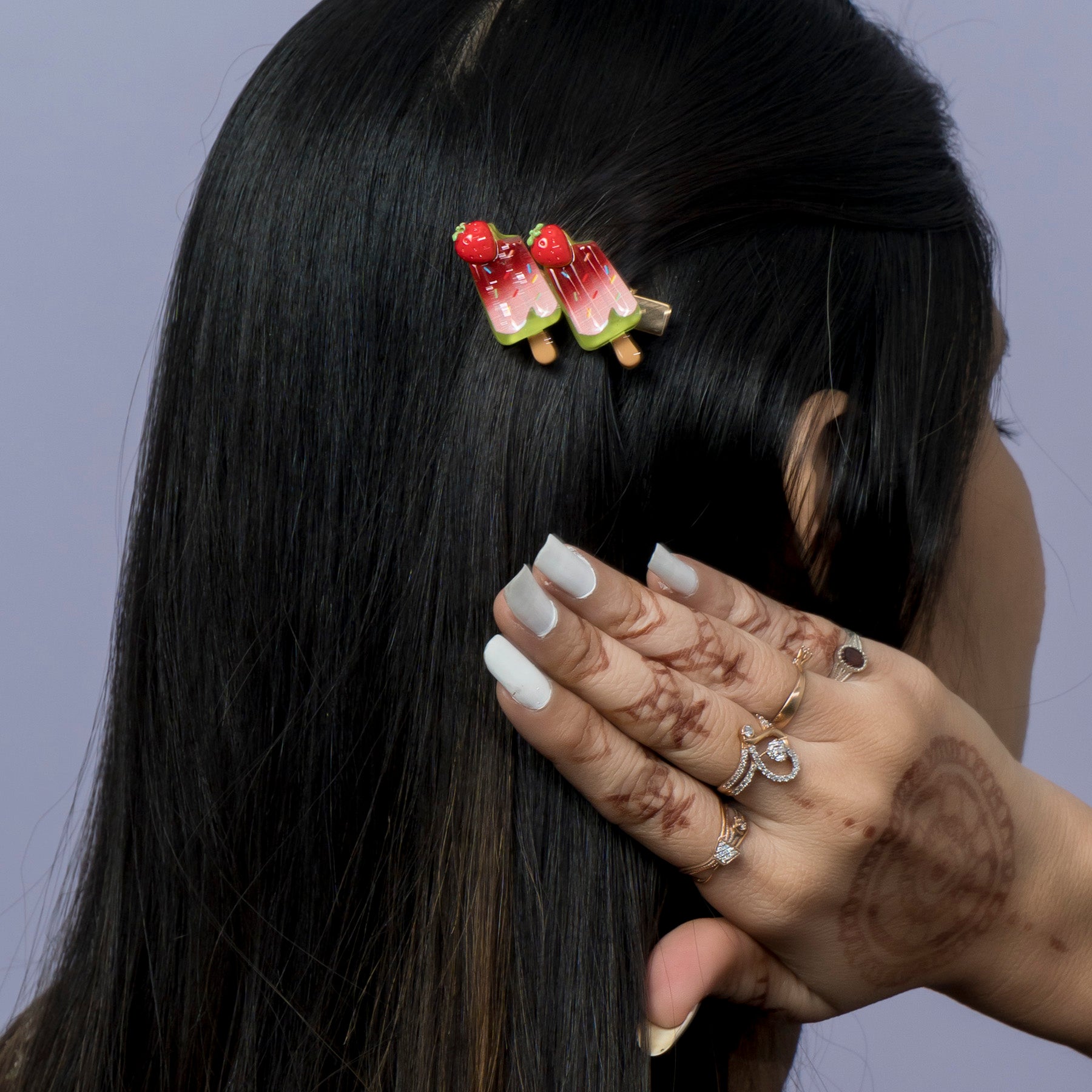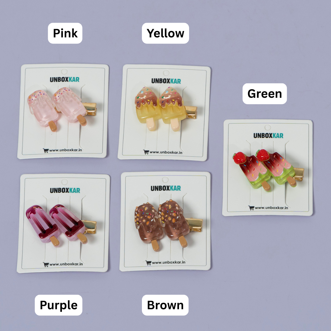 A fun pair of colourful ice-cream themed hair pins designed to add a cute, playful touch to any hairstyle. Lightweight, durable and perfect for kids and teens.