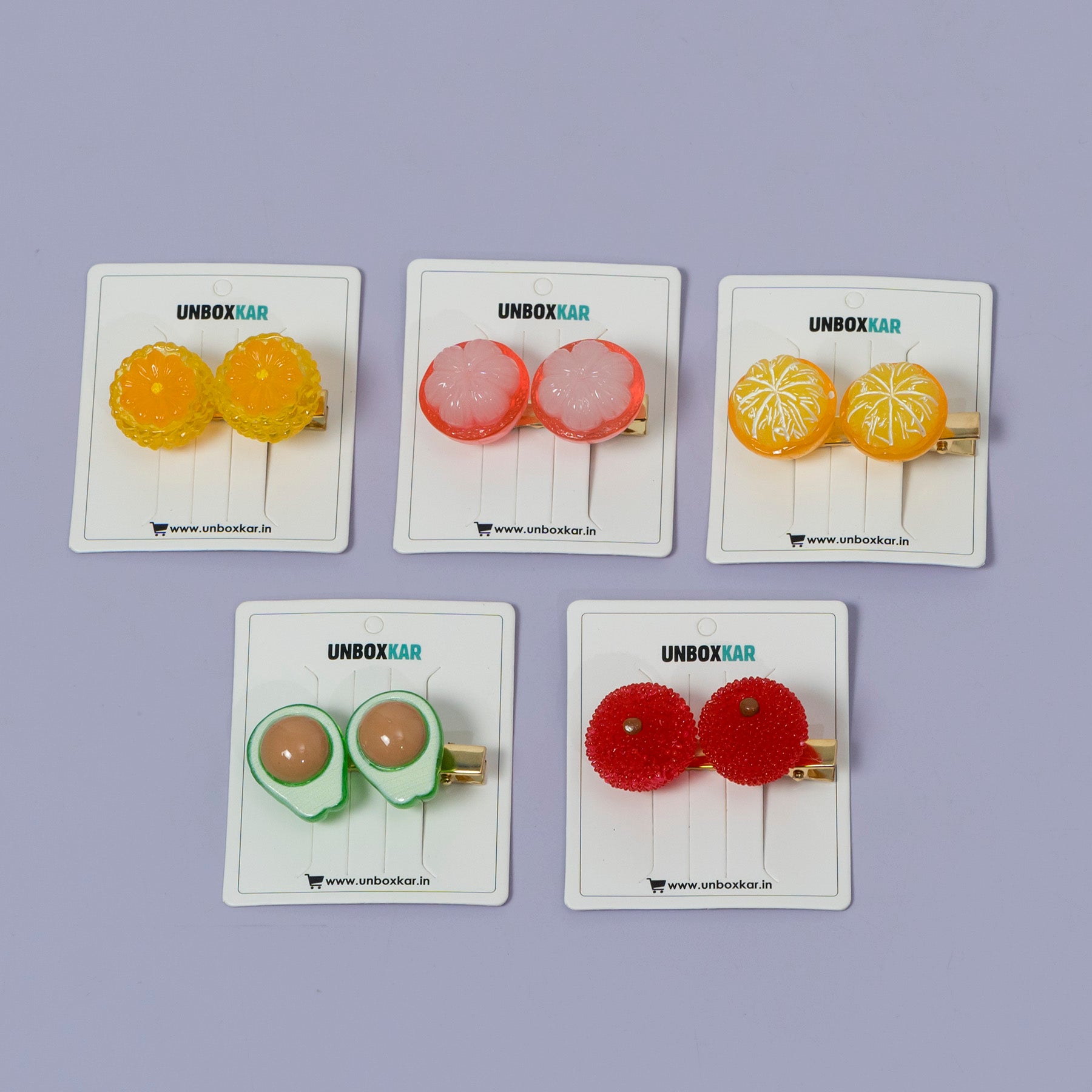 A cute pair of glossy fruit-style hair pins designed to add a fun, fresh, and colourful touch to any hairstyle. Lightweight, durable, and perfect for kids and teens.