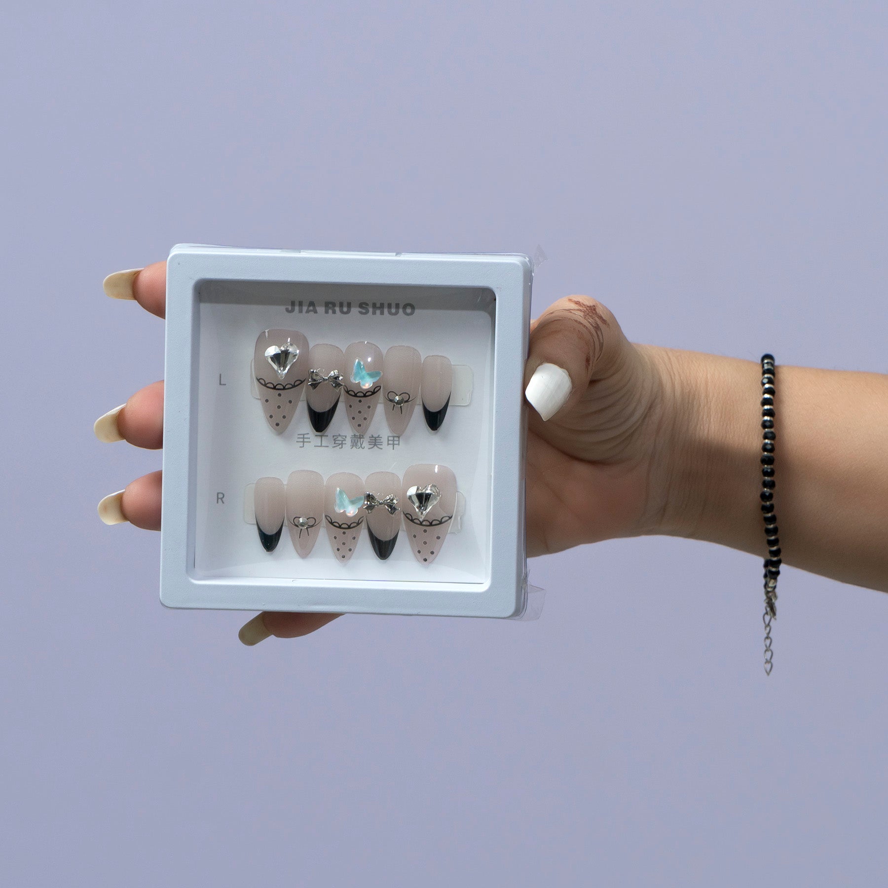 A high-quality designer press-on nail set featuring 10 premium styled nails for an instant salon look.