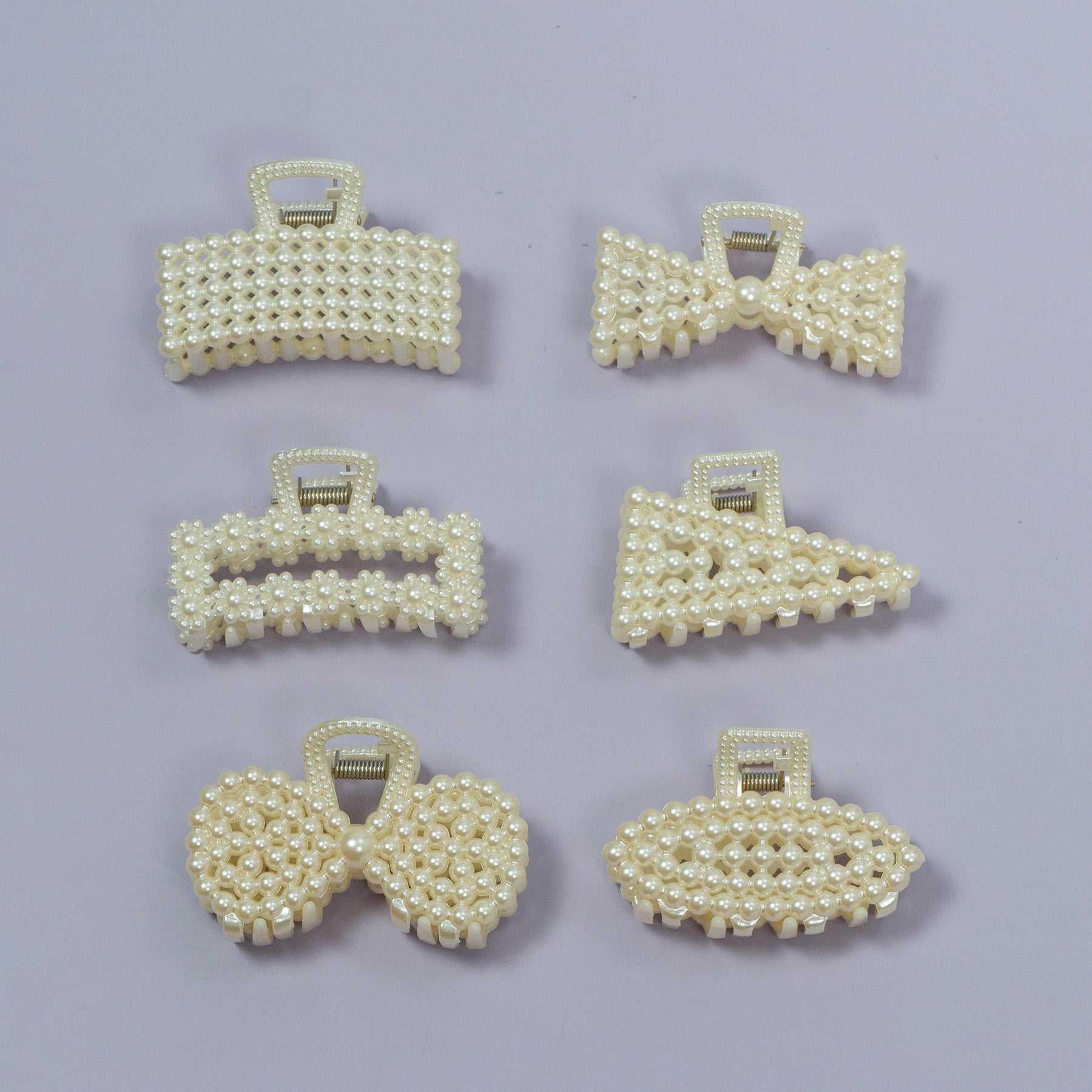 Add a classic touch to your hairstyle with our Pearl Hair Claw. Available in 6 elegant shapes, each clip features delicate pearl detailing and is crafted from durable plastic for a secure hold. Perfect for everyday wear or special occasions.
