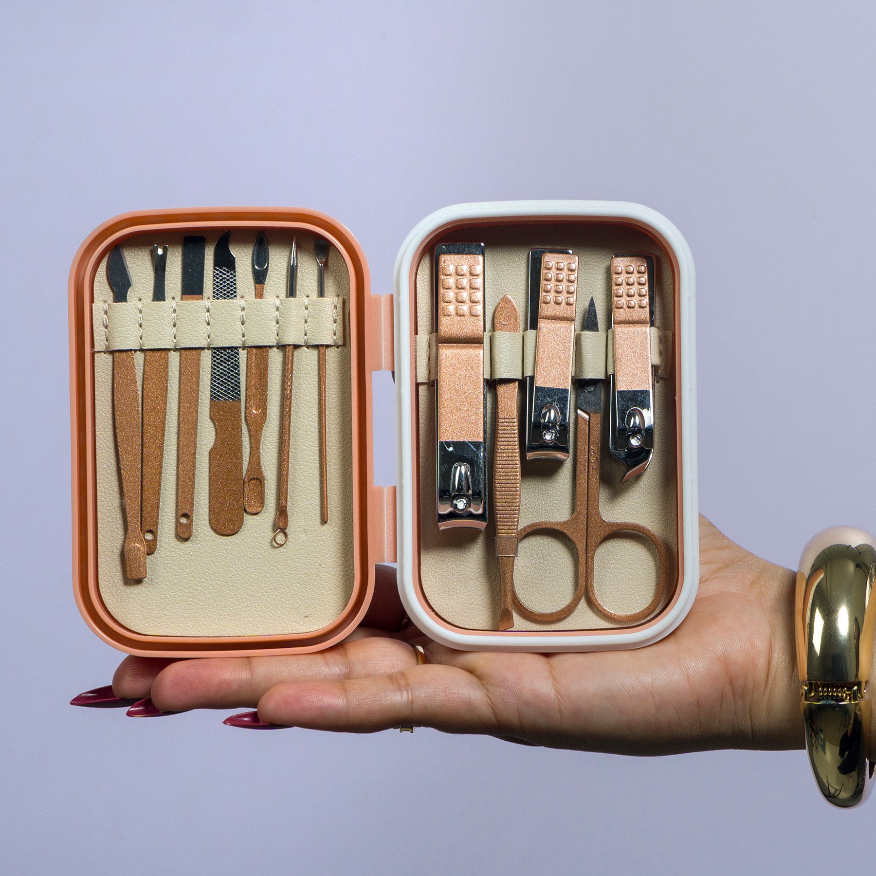 Keep your nails neat and clean anywhere with our Travel-Friendly 12-in-1 Manicure & Pedicure Kit. This compact grooming set comes in a sturdy case and includes all essential tools for nail and cuticle care. Ideal for home, office, or travel.