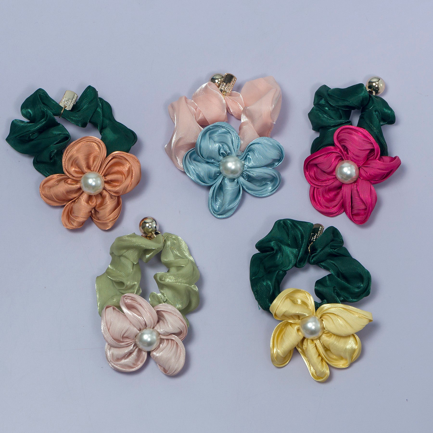 Satin Flower Pearl Hair Scrunchie – UBK3109
