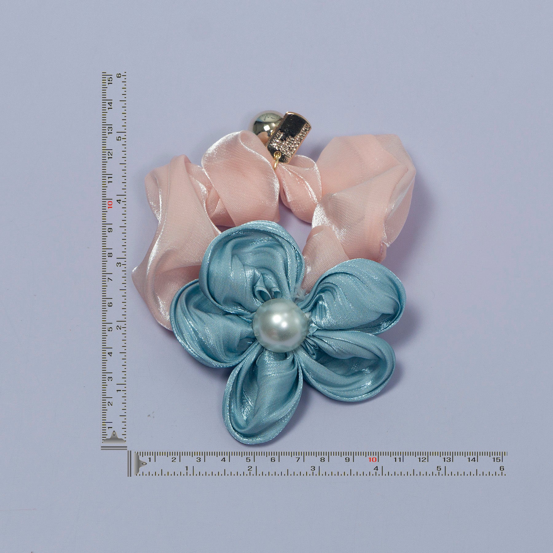 • Satin scrunchie with flower and pearl center