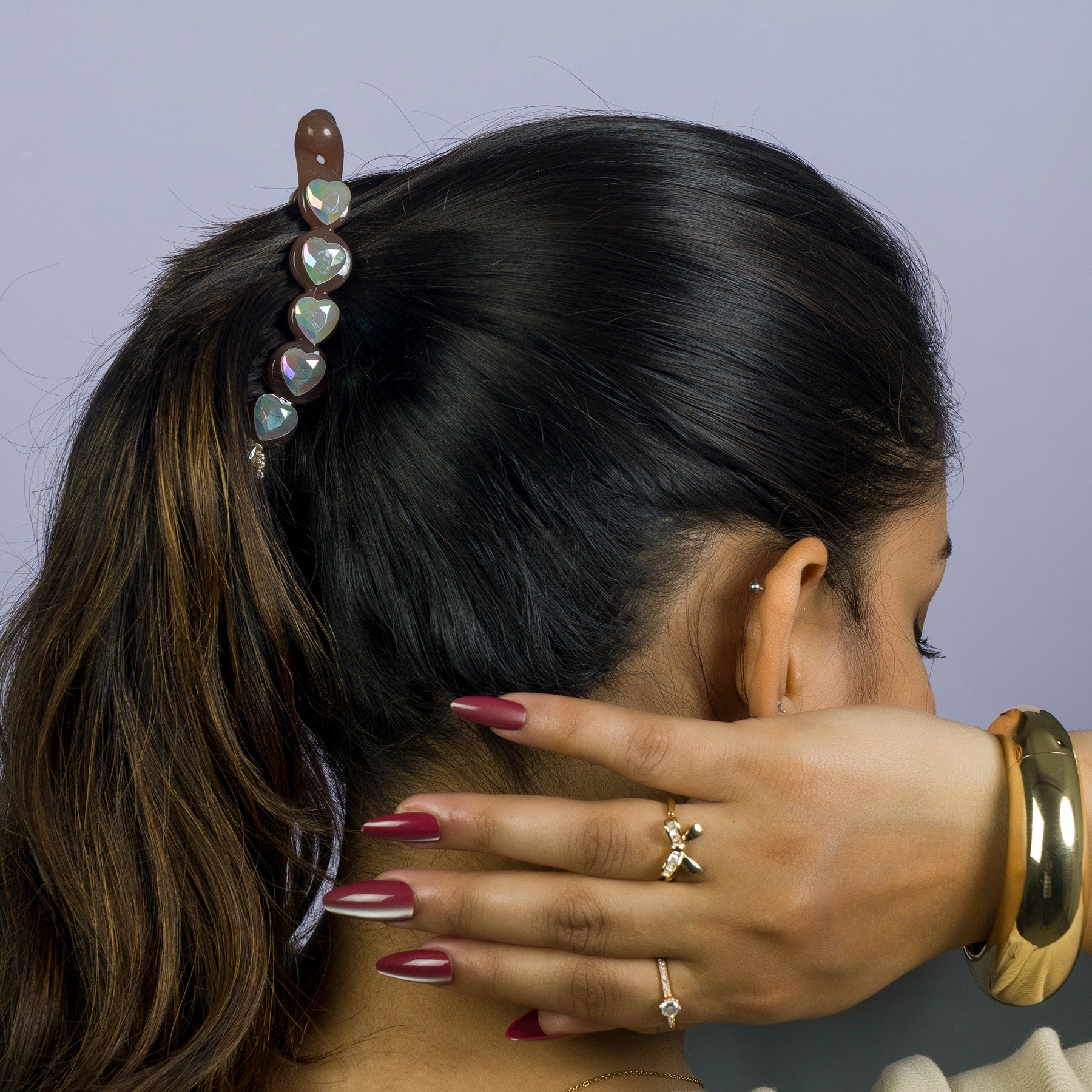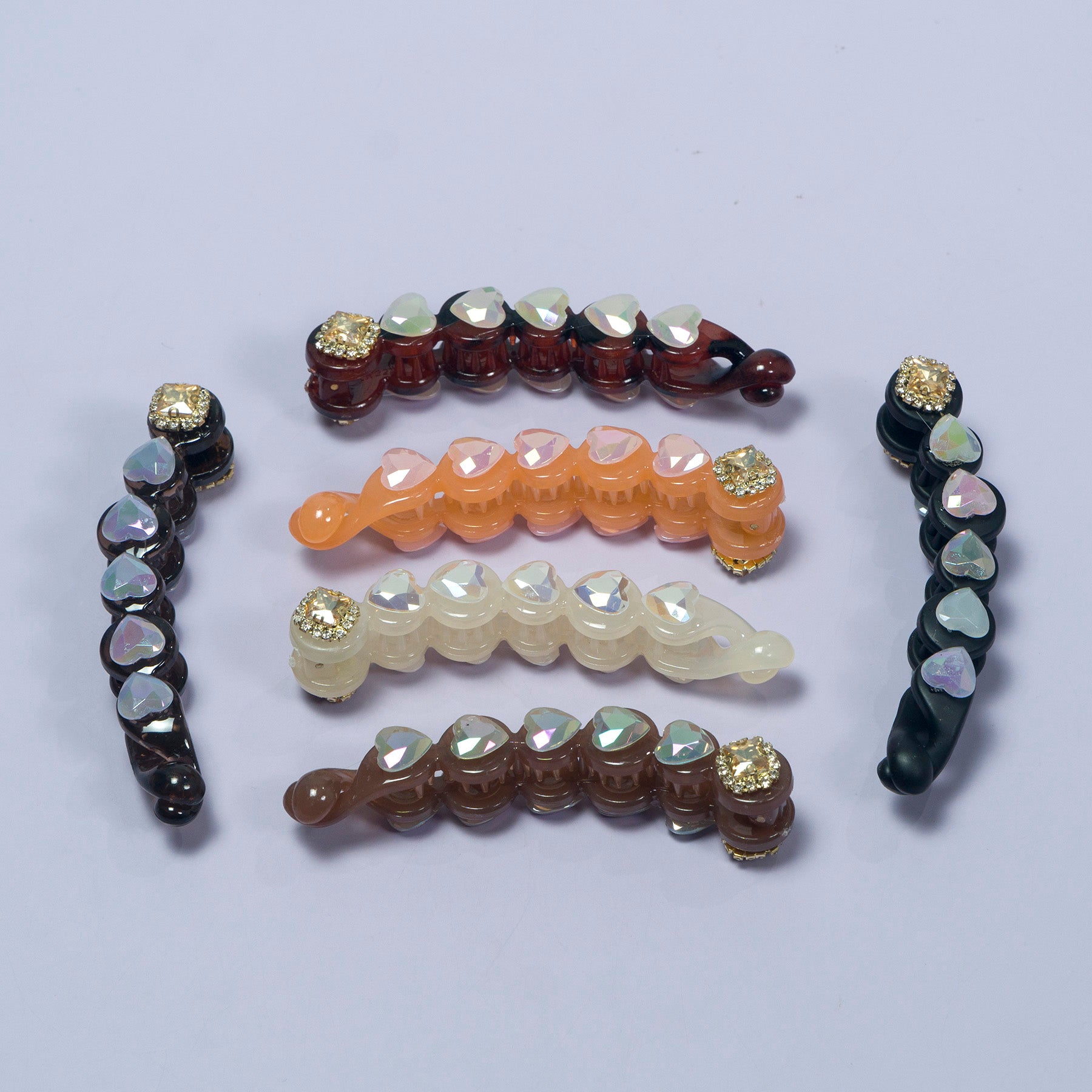 Add a playful shine to your hairstyle with our Shiny Heart Banana Clip. Designed with a glossy finish and cute heart shape, this clip offers both charm and function. Made from durable plastic, it ensures a strong grip, making it ideal for everyday styling. Available in 6 vibrant colors, 1 piece per pack.
