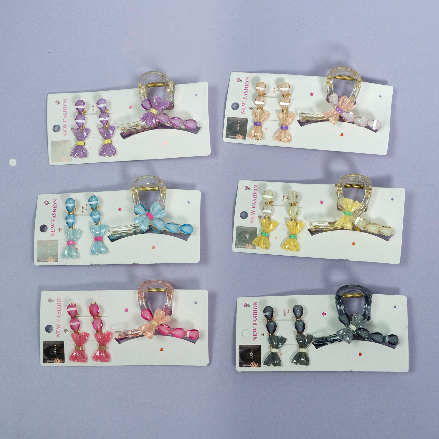 Add a touch of sparkle to your look with our Stone & Charm Hair Claw Set. This stylish combo includes one claw clip with stone and charm detailing, along with two matching pins. Crafted from durable plastic and metal, it’s perfect for everyday elegance or special occasions.