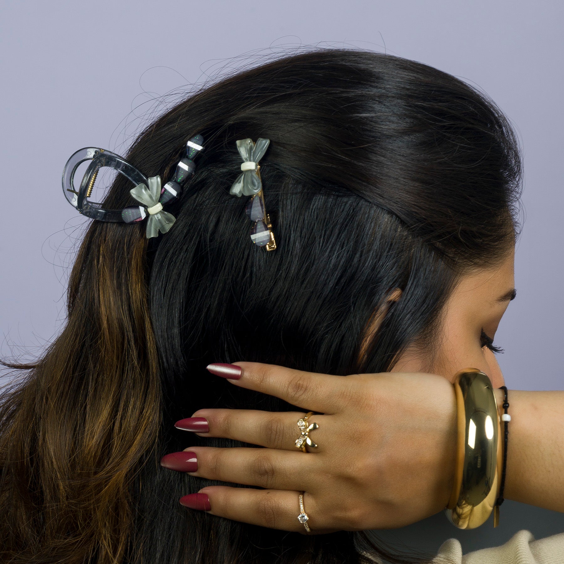Stone & Charm Hair Claw + 2 Pins (Set of 3) - UBK3066