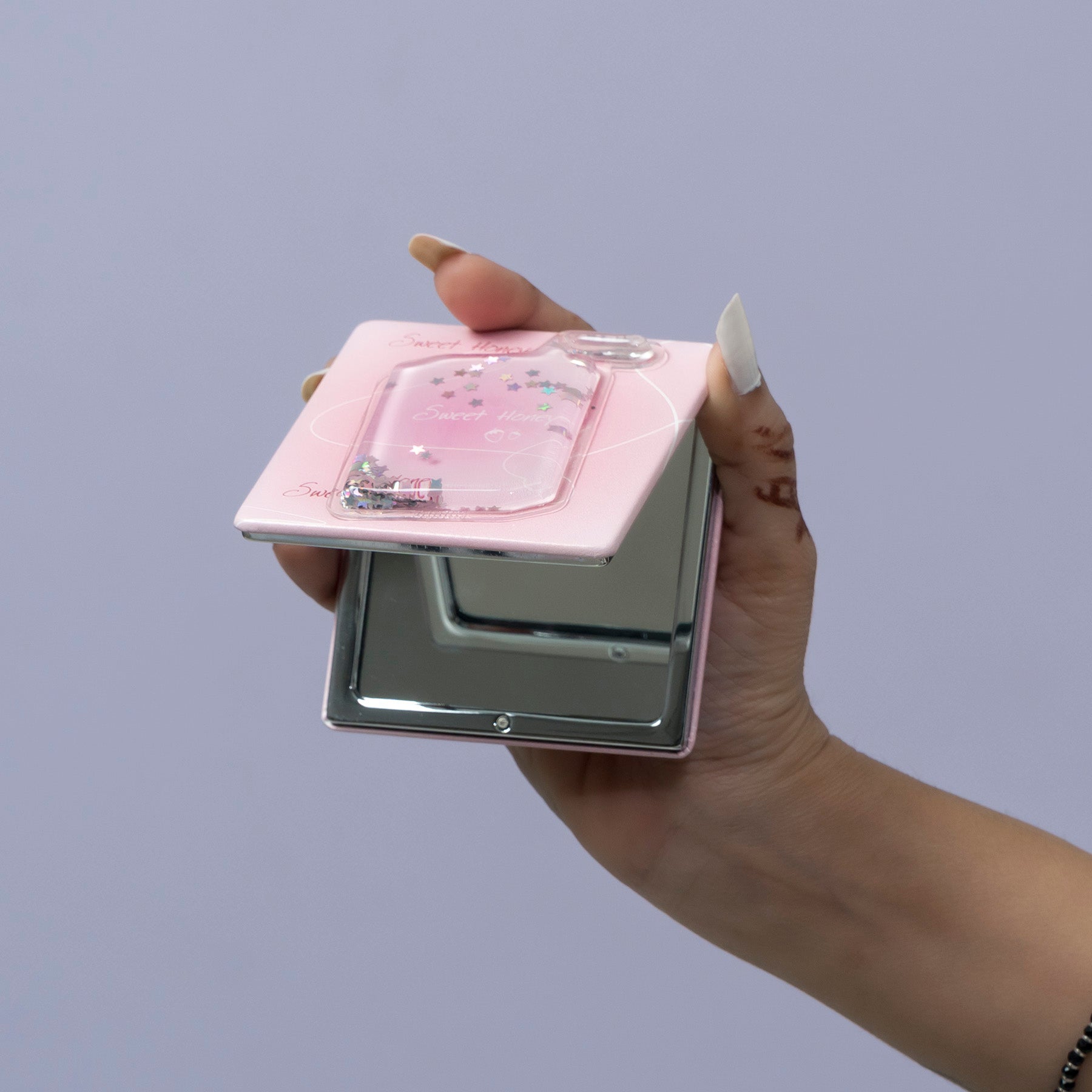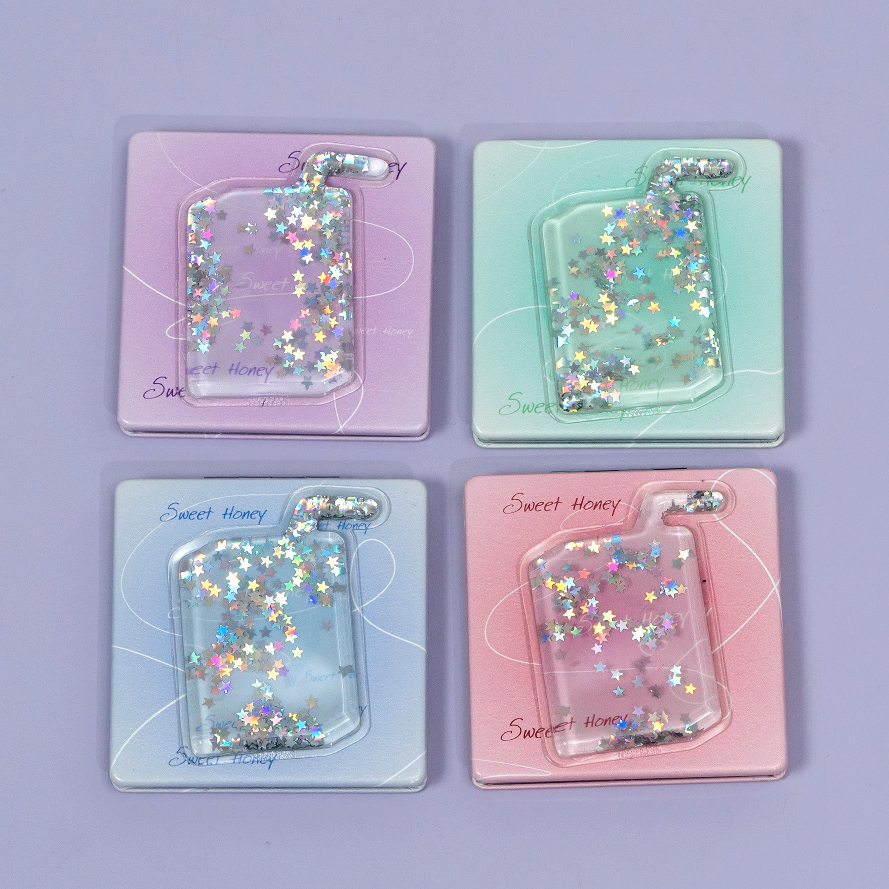 A pastel-themed compact mirror featuring a cute “Sweet Honey” shaker design filled with floating star glitter. Lightweight, pretty, and perfect for everyday touch-ups.
