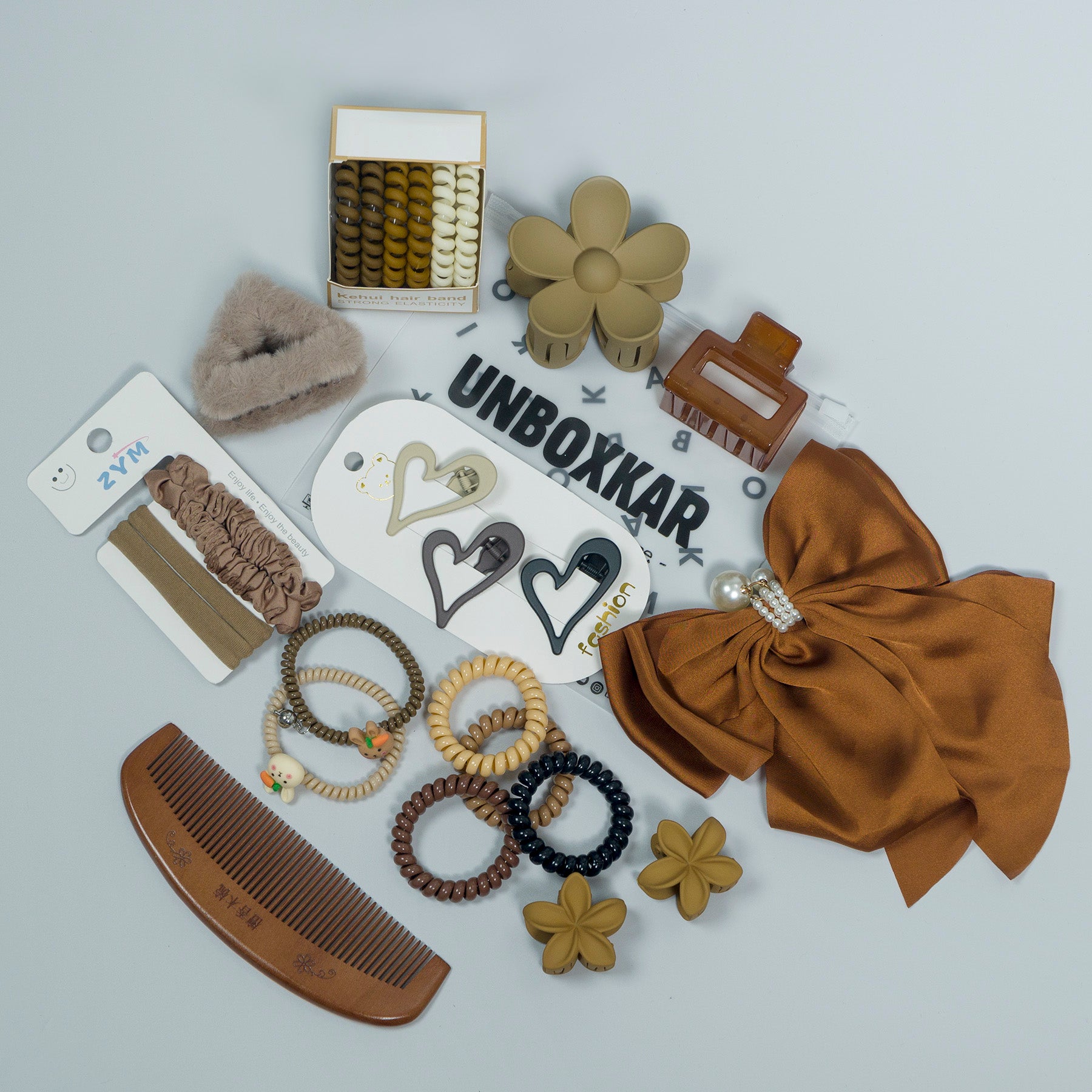 The Mocha Charm 🤎 Box brings together earthy elegance and practical styling in one curated set. Packed with wooden accents, soft spirals, and versatile claws, this collection is perfect for both daily wear and special occasions.